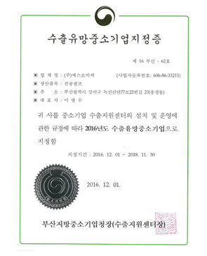 SVC-수출유망중소기업지정증